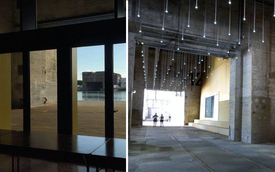 Murs recouverts de cimaises teintées teck, sol en béton poli rouge, rampes de lampes modulables en hauteur pour variation d’ambiance, matériaux sobres aux accents industriels… ici, tout respecte l’univers environnant tout en apportant des éléments de chaleur. Cette nouvelle salle totalement équipée de 80 m de long et 17 m de large, ouverte sur une terrasse donnant sur le bassin du port et dotée d’une scène de 200 m2, est désormais à la disposition des associations pour y concevoir et organiser leurs événements de moyenne ou grande ampleur.