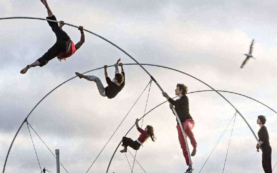 Chloé Moglia, 43 ans, artiste associée aux scènes nationale de l’Essonne, de Saint-Brieuc et aujourd’hui de Saint-Nazaire a su tracer son chemin entre l’art de la suspension, les arts martiaux et le cirque. Elle compose avec légèreté un chemin personnel. Très inspirée par ses lectures, comme celle de l’anthropologue Tim Ingold et sa Brève histoire des lignes elle propose une balade. Pour elle, « les frontières n’existent pas vraiment quand on sillonne les terres et les mers ».