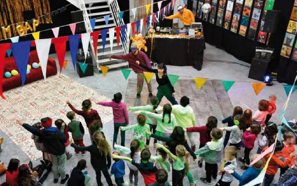 Boom Bap, spectacle participatif entre mix, danse et hip hop, à destination des enfants avec Julie Ollivier, chorégraphe de la Compagnie S, Julien Barrault, dj, et Jérôme Le breton, danseur bboy nantais.