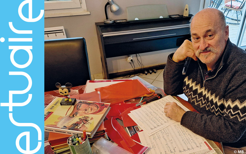 C’est chaussé de charentaises imprimées à l’effigie des Tontons flingueurs que le passionné de cinéma jusqu’au bout des pieds et chef de chœur inspiré Christophe Vincent nous ouvre grand les portes de son cabinet de curiosités créatives, bazar des passions improbables… Auteur de bandes dessinées « jamais éditées », inventeur d’un jeu de 7 familles « écoulé à la sauvage à 1000 exemplaires en 40 ans, pour initier la musique aux enfants », collectionneur invétéré de figurines de Disney, il conserve d’impressionnantes piles des numéros du Journal de Mickey ou encore de Spirou, qu’il relie avec un soin artisanal. Grand « fan » du Second Empire, arborant une moustache impériale comme un étendard au vent, prêt (dans un futur proche) à mener ses 4 000 soldats de plomb à l’assaut pour rejouer, tambour battant, la bataille de Waterloo, il fait aussi vibrer son orgue de Barbarie, chaque été, en costume d’époque – s’il vous plaît –, devant la collégiale de Guérande quand il ne fait pas vibrer les cordes vocales !